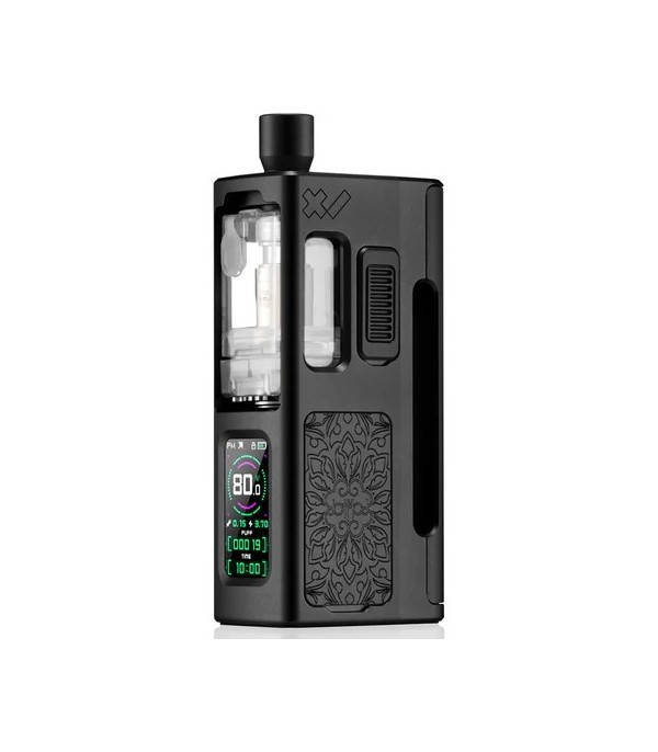 Siyah DotMod MissonXV dotApollo Pod Mod, dijital ekranlı, desenli.