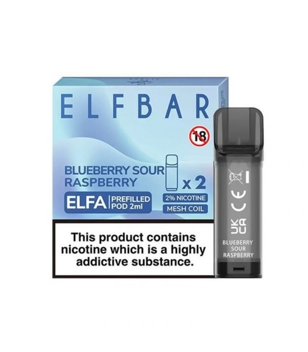 Elf Bar Elfa Blueberry Sour Raspberry önceden doldurulmuş kartuş 2'li paket.