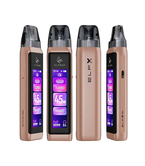 Elf Bar ELFX Ultra Vape Pod Kit, dokunmatik ekran, özelleştirilebilir LED ışık ve RGB tema seçenekleriyle dikkat çeker. 1500mAh bataryası, 0.6 Ohm ve 0.8 Ohm mesh coil pod seçenekleriyle hem aroma hem buhar performansı sunar. Turbo ve Eco modları ve Infinite Airflow sistemine sahip olmasıyla MTL ve DTL içim tarzları arasında geçiş yapabilen, hem görsel hem işlevsel bir cihazdır.