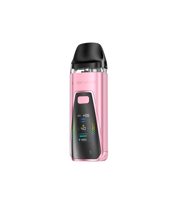 GeekVape Peak Pod Mod pembe renkli, kompakt MTL elektronik sigara cihazı.