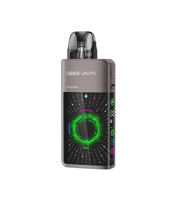 GeekVape Digi Q Vista, çarpıcı 3D ekran tasarımı, güçlü bataryası ve çok yönlü ayar seçenekleri ile hem yeni başlayanlara hem de deneyim isteyen vaper’lara hitap eden modern bir pod sistemidir. 1600mAh dahili batarya ve USB-C hızlı şarj desteği ile tüm gün süren kullanımlar için uygundur. ECO, SMART ve DYNAMIC modları sayesinde cihaz, pod’un direncine ve kullanıcı tercihine göre performansını otomatik olarak dengeler.