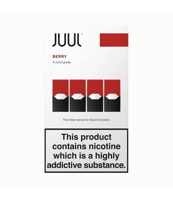 Juul Berry 5% Kartuş Paketi, 4 Kırmızı ve Siyah Pod İçerir.