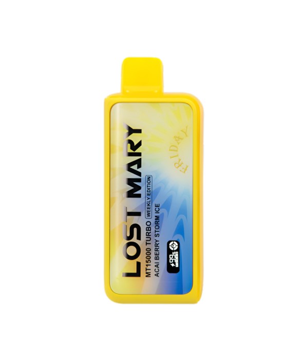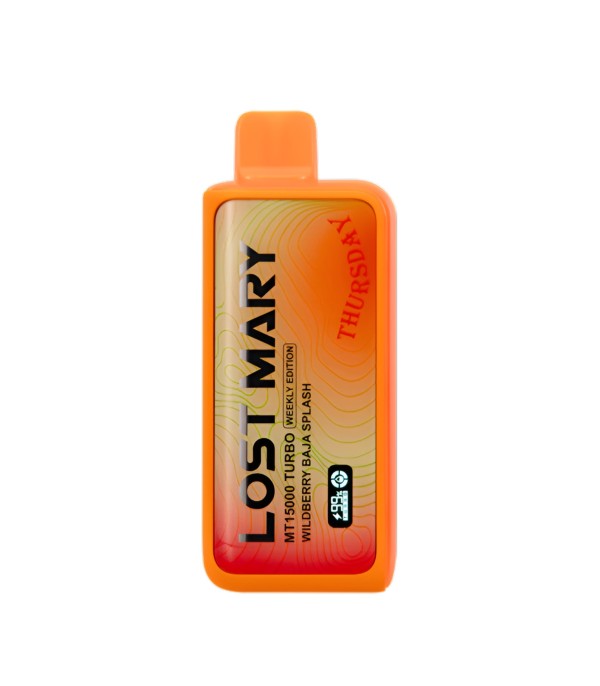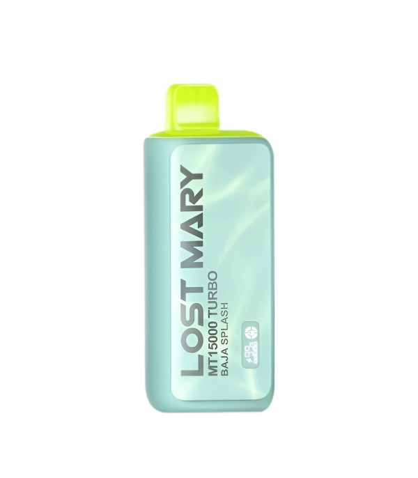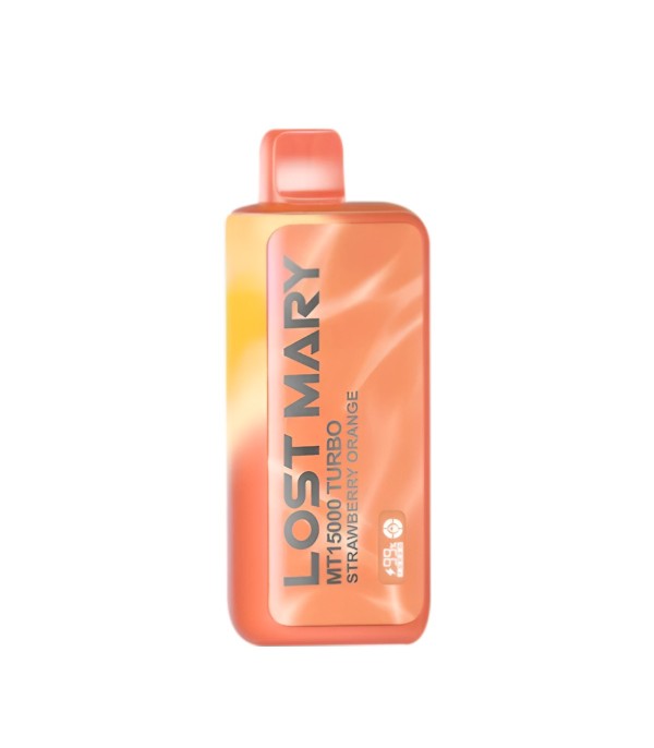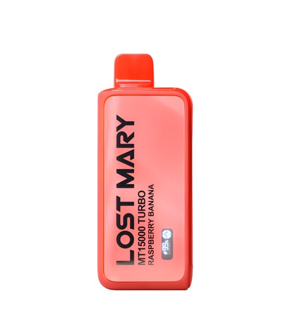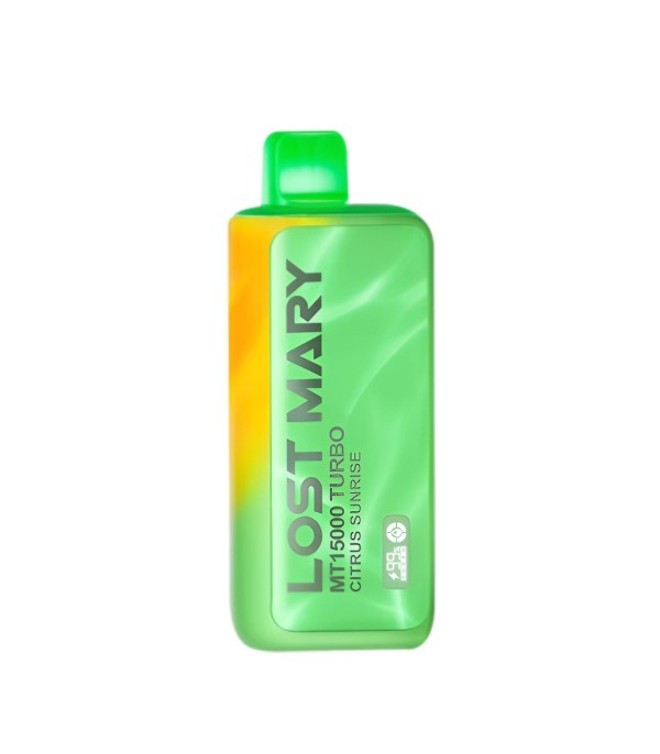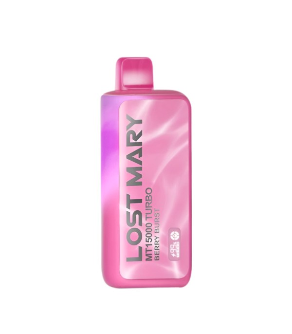 Lost Mary MT15000 Turbo, 15.000 pufa kadar kullanım, %5 nikotin (50 mg), 16 mL dolum, USB Type-C şarj, çift mesh coil ve LCD ekran ile uzun ömür ve yoğun aroma sunan şarj edilebilir kullan at elektronik sigaradır.