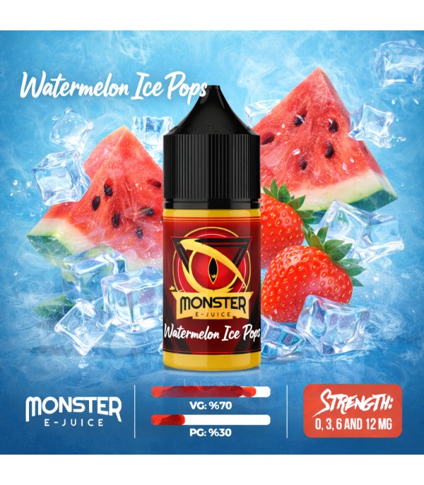 Monster Watermelon Ice Pops 30ml e-likit ile yaz ferahlığını yaşayın! Sulu karpuz, tatlı çilek ve yoğun buz serinliğinin mükemmel uyumu. %70 VG/ %30 PG oranıyla dengeli içim sunar. 0-3-6-12mg nikotin seçenekleriyle bu serinletici lezzeti hemen keşfedin.