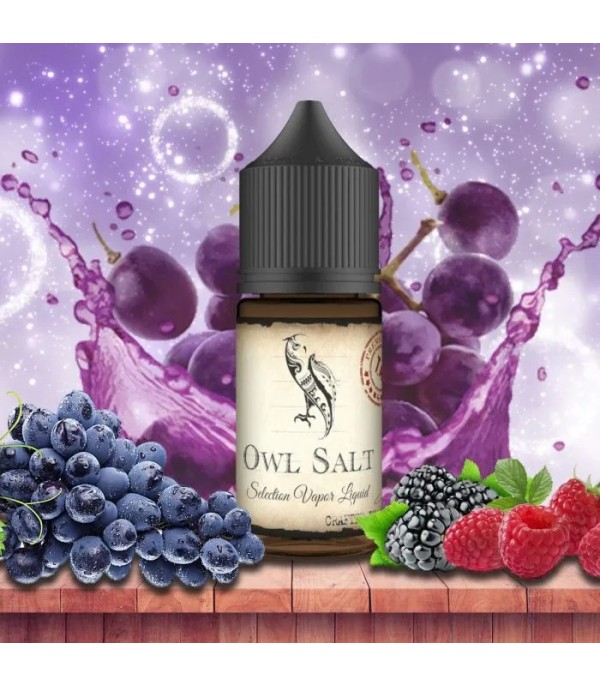 Owl Vape Grape Ice Blaze Salt Likit şişesi, üzüm ve orman meyveli.