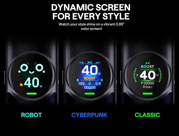 • 0.85" renkli ekran — watt, pil durumu ve direnç bilgilerini net gösterir