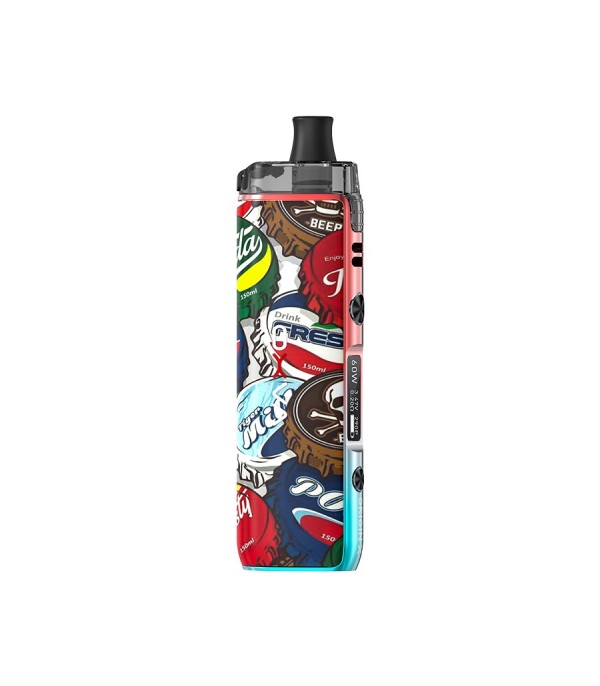 OXVA Origin X Pod Mod siyah altın renkli, desenli gövde ve 60W ekranlı.