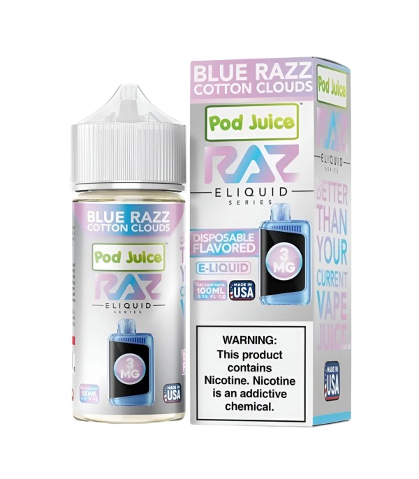 Pod Juice X Raz Blue Razz Cotton Clouds 100ml E-Likit USA