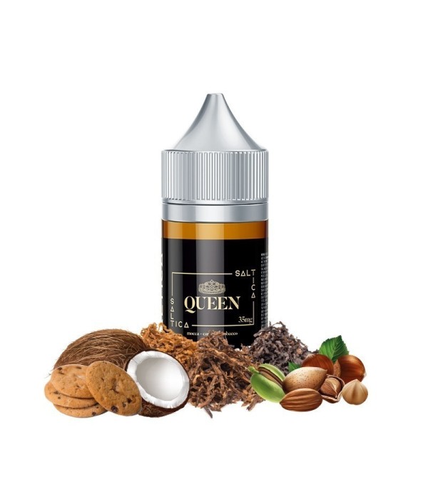 Saltica Queen Salt Likit ile Tütün, Hindistan Cevizi, Badem ve Fındık notalarının zengin, kremsi karışımını deneyimleyin. %50 PG/%50 VG oranı, mükemmel buhar ve aroma sağlar. Salt nikotin içeriği ile hızlı doygunluk sunan bu özel elektronik sigara likitini keşfedin!