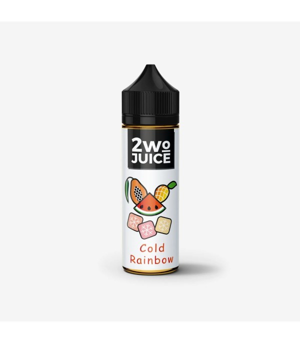 Two Juice Cold Rainbow E-Likit 60 ml, kavun, mango ve papaya aromalarını güçlü mentol ferahlığıyla harmanlar. 70VG / 30PG oranı ve 3 mg & 6 mg nikotin seçenekleriyle serin ve dengeli bir buhar deneyimi sunar.