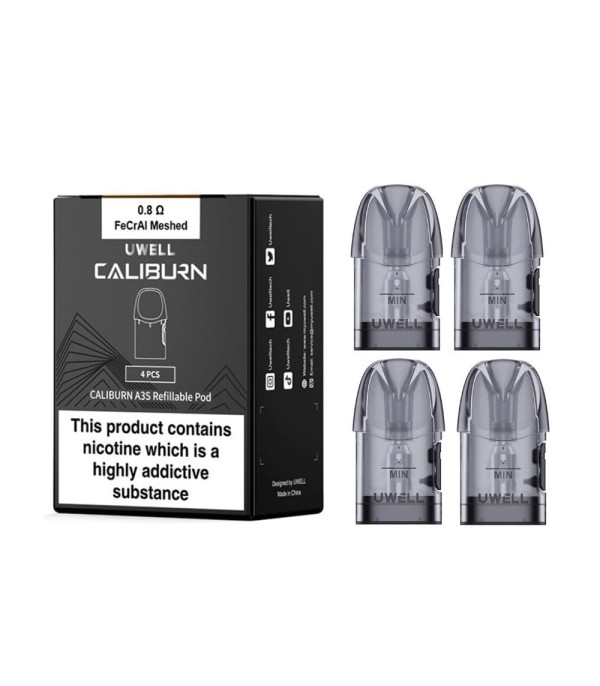 UWELL Caliburn A3 Replacement Pods, Caliburn A3, AK3 ve AZ3 cihazlar için 2 ml likit kapasitesine sahip yeniden doldurulabilir yedek pod kartuşlardır. Üstten dolum sistemi ve entegre 1.0 ohm mesh coil ile dengeli MTL içim ve zengin aroma sunar. Paket 4 adet kartuş içerir.