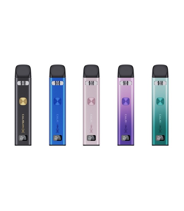Uwell Caliburn G3 Pod Mod, son derece popüler Uwell Caliburn G serisi MTL pod mod sistemlerinin en son üyesidir ve dahili 0,60 Ohm coile sahip kartuşu ile ybenzersiz bir aroma yoğunluğu ve kusursuz bir boğaz vurumu sunar. Uwell Caliburn G3 Pod Mod, bir OLED ekrana, dahili 900 mAh bataryaya ve üç ateşleme moduna sahiptir: tetik düğmesi kilit modu, nefes sensörü veya her ikisi. Yedek Uwell Caliburn G3 pod kartuşları, MTL ve RDL kullanımları için 0.6 Ohm, 0.9 Ohm ve 1.2 Ohm (Çok Yakında) dirençlerde mevcuttur.