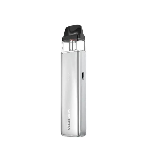 Vaporesso XROS 5 Mini Pod Mod gümüş renkli, kompakt elektronik sigara cihazı.