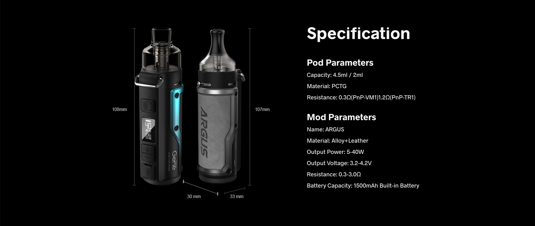 Güçlü ve dayanıklı olmasıyla tanınan Argus serisinin çinko alaşım ve deri gövde ile tasarlanmış yeni cihazıdır. Sağlamlığın yanında oldukça hafiftir. 1500 mAh dahili pile sahiptir. Bu yüksek pil gücü ile gün boyunca keyif yapabilirsiniz. Type-C ile hızlıca şarj edebilirsiniz. Tüm PnP coilleri ile uyumludur.