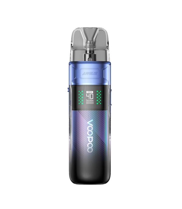 Voopoo Argus A Pod Mod mavi, dijital ekranlı kompakt elektronik sigara.